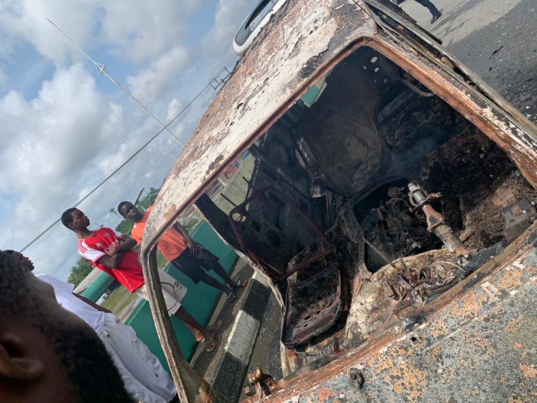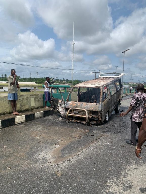 A vehicle was completely burnt on Wednesday on top of the popular Beggar Flyover in Yenagoa after it caught fire while in motion.