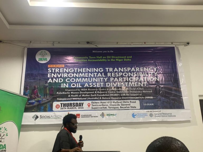 The stakeholders made this known on Thursday, March 28, 2026 during a one-day town hall meeting organised by the Human and Environmental Development Agenda (HEDA) with the theme, “Strengthening Transparency, Environmental Responsibility and Community Participation in Oil Asset Divestment,” with support from Transparency International Australia and the Natural Resource Governance Institute.